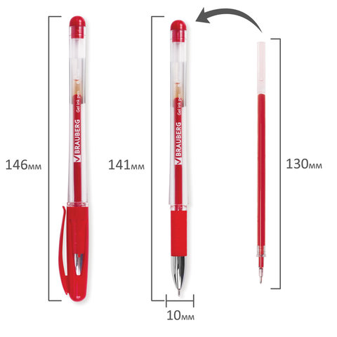 Ручка гелевая с грипом BRAUBERG "Fine Gel", КРАСНАЯ, игольчатый узел 0,5 мм, линия письма 0,35 мм, 141181