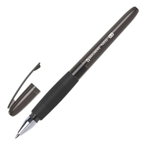 Ручка гелевая с грипом BRAUBERG "NEO", ЧЕРНАЯ, пишущий узел 0,5 мм, линия письма 0,35 мм, 144537