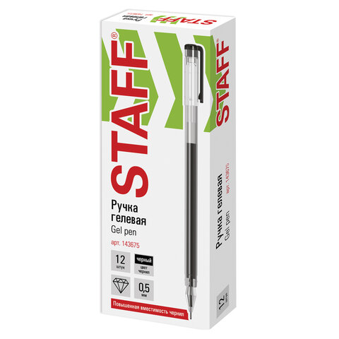 Ручка гелевая STAFF "Basic" GP-675, ЧЕРНАЯ, длина письма 1000 м, игольчатый узел 0,5 мм, линия письма 0,35 мм, 143675
