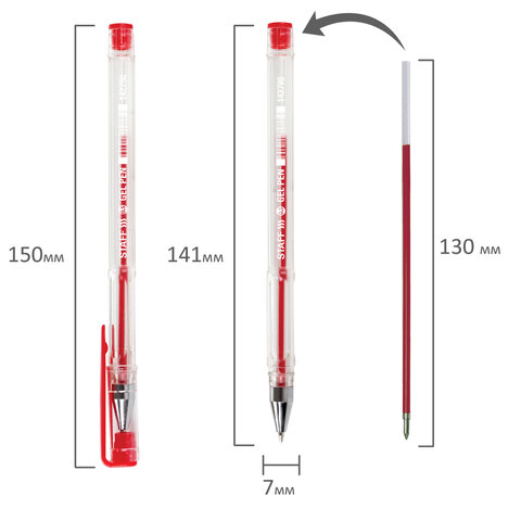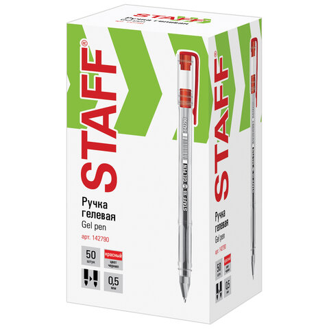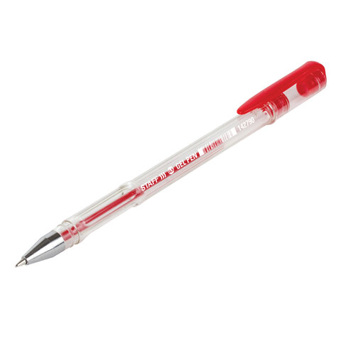 Ручка гелевая STAFF "Basic" GP-789, КРАСНАЯ, корпус прозрачный, хромированные детали, узел 0,5 мм, 142790