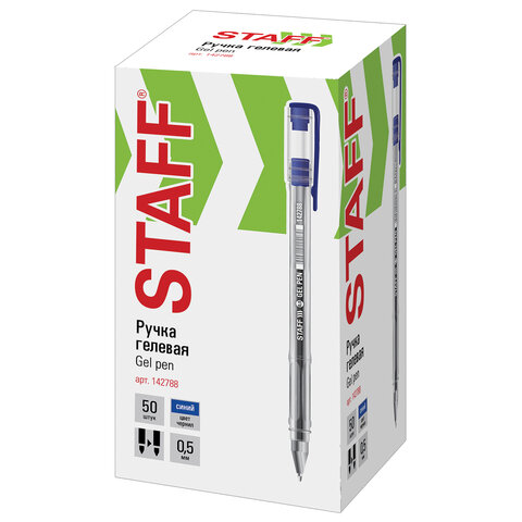 Ручка гелевая STAFF "Basic" GP-789, СИНЯЯ, корпус прозрачный, хромированные детали, узел 0,5 мм, 142788