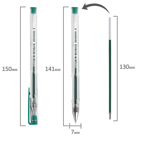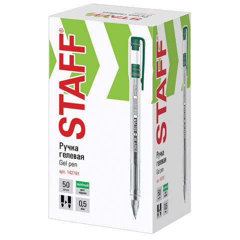 Ручка гелевая STAFF "Basic" GP-789, ЗЕЛЕНАЯ, корпус прозрачный, хромированные детали, узел 0,5 мм, линия письма 0,35 мм, 142791