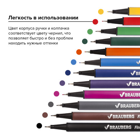 Набор капиллярных ручкек (линеров) BRAUBERG "Aero" обеспечивает супертонкое и мягкое письмо. Идеально подходит для письма, чертежей и точной графики. Также широко применяется в художественной графике.