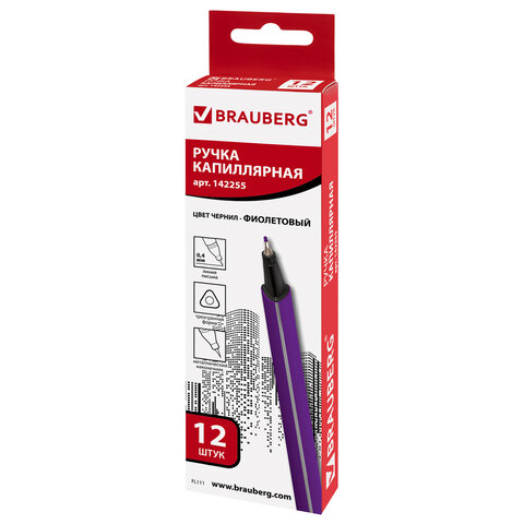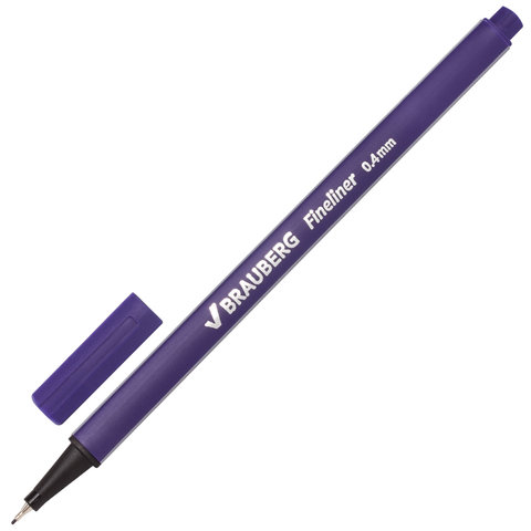 Ручка капиллярная (линер) BRAUBERG "Aero", ФИОЛЕТОВАЯ, трехгранная, металлический наконечник, линия письма 0,4 мм, 142255