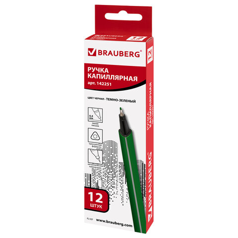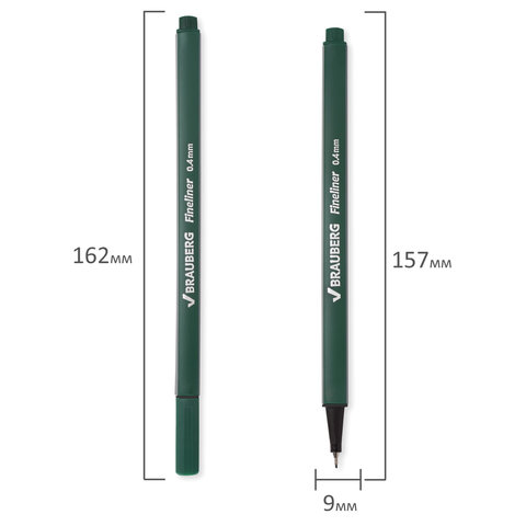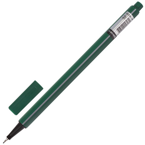 Ручка капиллярная (линер) BRAUBERG "Aero", ТЕМНО-ЗЕЛЕНАЯ, трехгранная, металлический наконечник, линия письма 0,4 мм, 142251