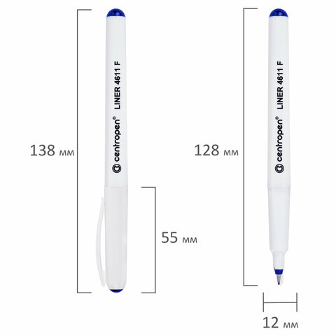 Ручка капиллярная (линер) СИНЯЯ CENTROPEN "Liner", трехгранная, линия письма 0,3 мм, 4611, 2 4611 0106