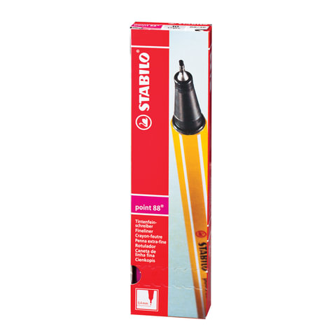 Ручка капиллярная (линер) STABILO "Point 88", НЕОНОВАЯ РОЗОВАЯ, корпус оранжевый, линия письма 0,4 мм, 88/056