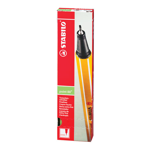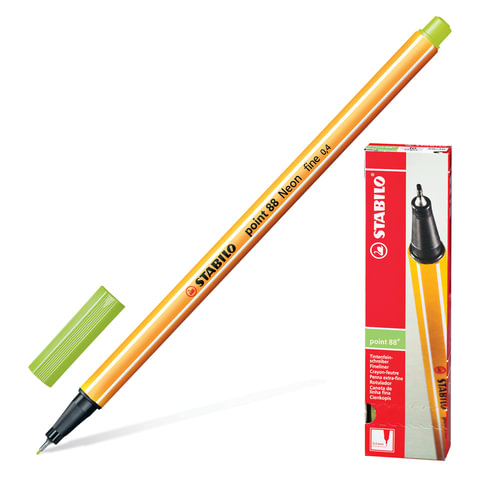 Ручка капиллярная (линер) STABILO "Point 88", СВЕТЛО-ЗЕЛЕНАЯ, корпус оранжевый, линия письма 0,4 мм, 88/33