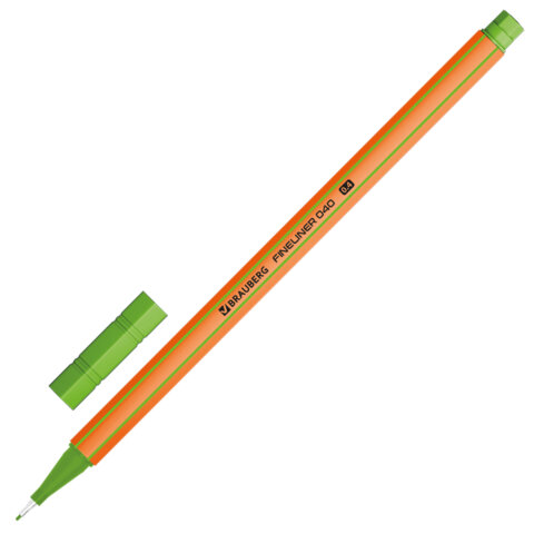 Ручка капиллярная (линер) ЗЕЛЕНАЯ, BRAUBERG "FINE 040", шестигранная, линия письма 0,4 мм, 144144