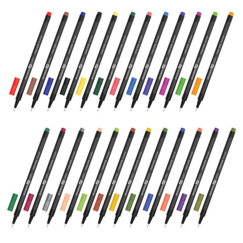 Ручки капиллярные (линеры), 24 ЦВЕТА, BRAUBERG ART "Classic", трехгранные, металлический наконечник, линия письма 0,4 мм, 144148