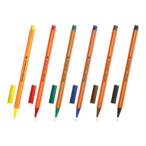 Ручки капиллярные (линеры) 6 ЦВЕТОВ, BRAUBERG "FINE 040", шестигранные, линия 0,4 мм, 144141