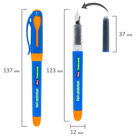 Ручка перьевая с 10 сменными картриджами, иридиевое перо, BRAUBERG KIDS, 143955