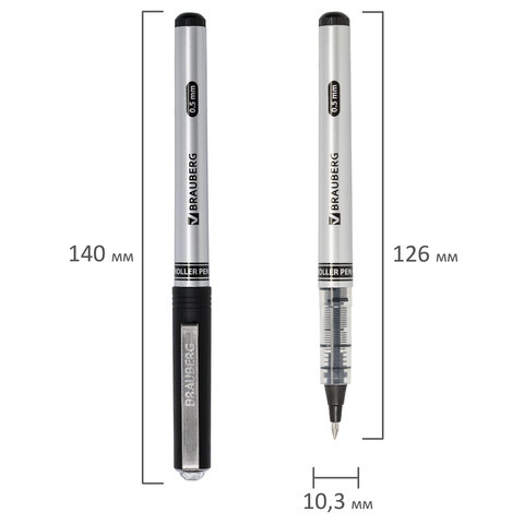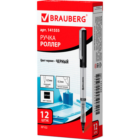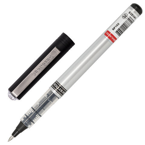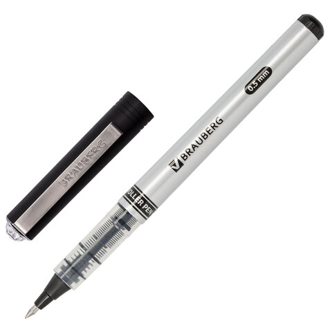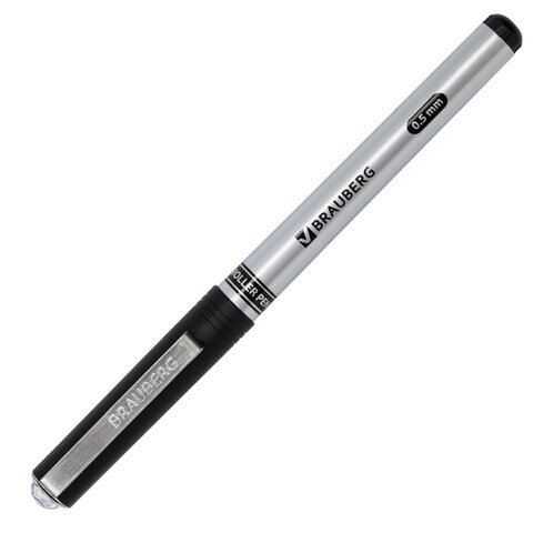 Ручка-роллер BRAUBERG "Flagman", ЧЕРНАЯ, корпус серебристый, хромированные детали, узел 0,5 мм, линия письма 0,3 мм, 141555