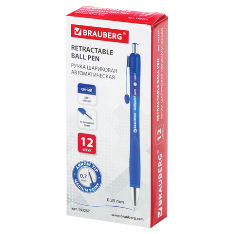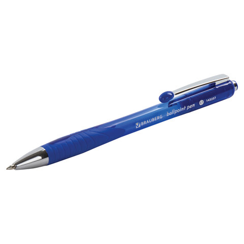 Ручка шариковая автоматическая с грипом BRAUBERG "Harmony Tone", СИНЯЯ, хромированные детали, узел 0,7 мм, линия письма 0,35 мм, 143257