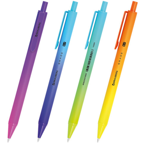 Автоматическая шариковая ручка BRAUBERG "Grade" обладает soft-touch покрытием и оригинальным дизайном в стиле градиент на корпусе.