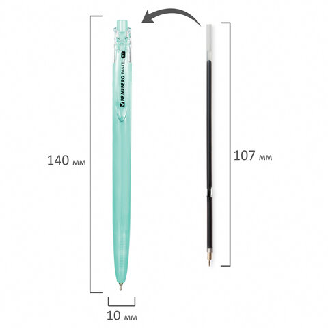 Стильная автоматическая шариковая ручка BRAUBERG "PASTEL" - идеальный аксессуар для работы и учёбы.