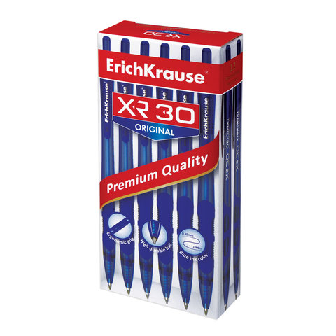 Ручка шариковая автоматическая ERICH KRAUSE "XR-30", СИНЯЯ, корпус синий, узел 0,7 мм, линия письма 0,35 мм, 17721
