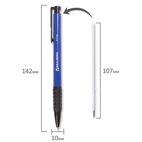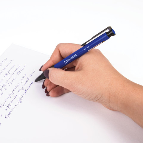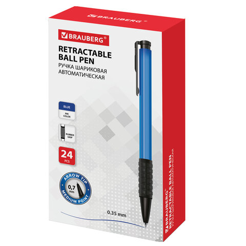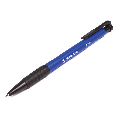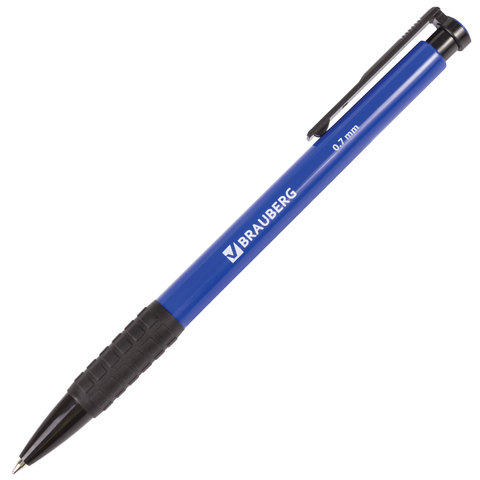 Ручка шариковая автоматическая с грипом BRAUBERG "Explorer", СИНЯЯ, корпус синий, узел 0,7 мм, линия письма 0,35 мм, 140581
