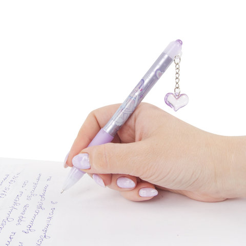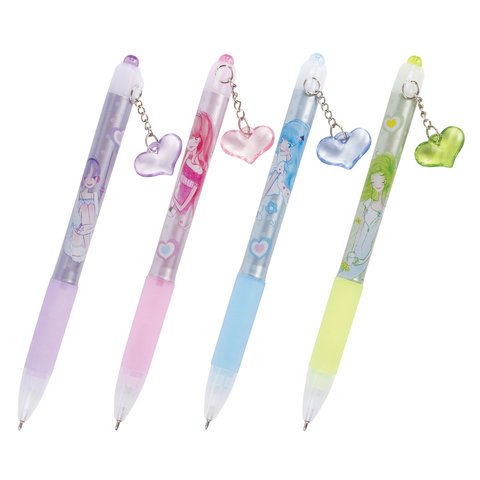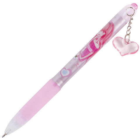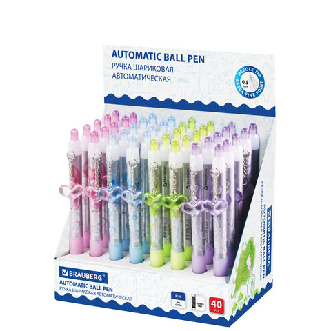 Ручка шариковая автоматическая с грипом BRAUBERG "First Love", СИНЯЯ, подвеска, корпус ассорти, узел 0,5 мм, линия письма 0,3 мм, 141285