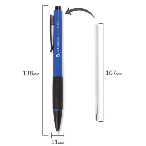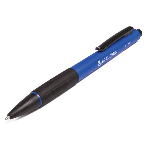 Ручка шариковая автоматическая с грипом BRAUBERG "Klasse", СИНЯЯ, корпус ассорти, узел 0,7 мм, линия письма 0,35 мм, 140588