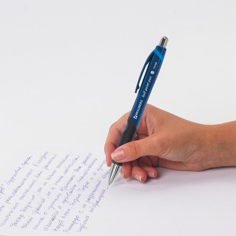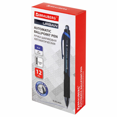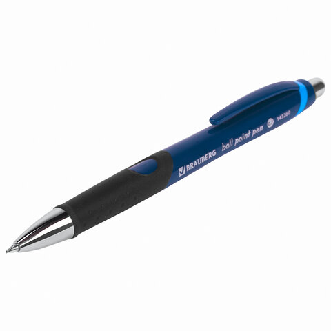 Ручка шариковая автоматическая с грипом BRAUBERG "Urban", СИНЯЯ, хромированные детали, узел 0,7 мм, линия письма 0,35 мм, 143260