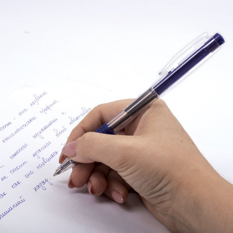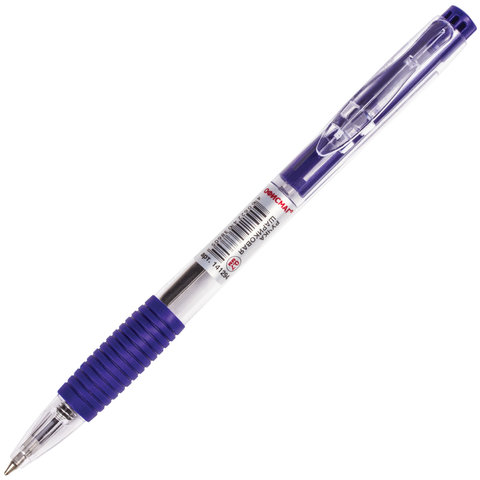 Ручка шариковая автоматическая с грипом ОФИСМАГ, СИНЯЯ, корпус прозрачный, узел 0,7 мм, линия письма 0,35 мм, 141294