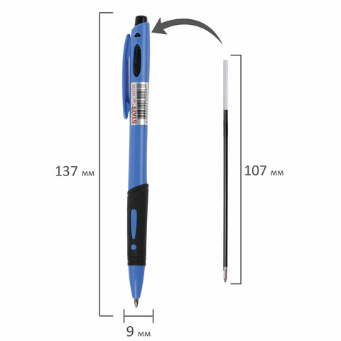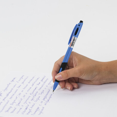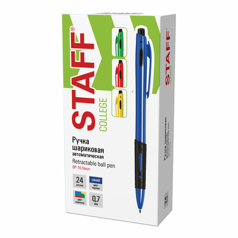 Ручка шариковая автоматическая с грипом STAFF "BP-16 Neon", СИНЯЯ, ассорти, линия письма 0,35 мм, 143750