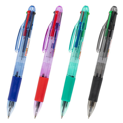 Ручка многоцветная шариковая автоматическая STAFF "College" 4 ЦВЕТА BP-15, линия письма 0,35 мм, 143748
