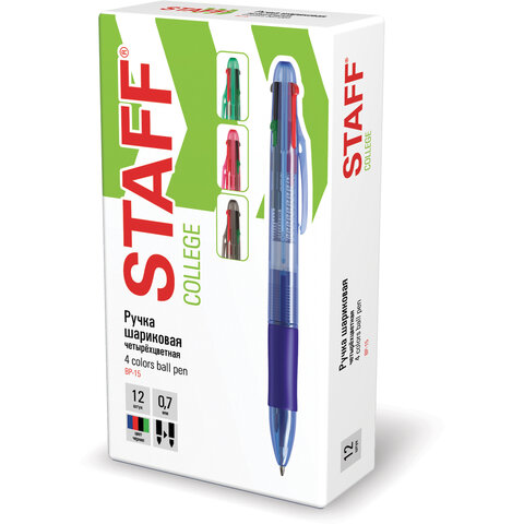 Ручка многоцветная шариковая автоматическая STAFF "College 4 ЦВЕТА BP-15" - это универсальная ручка, которая станет отличным помощником в учебе или работе.