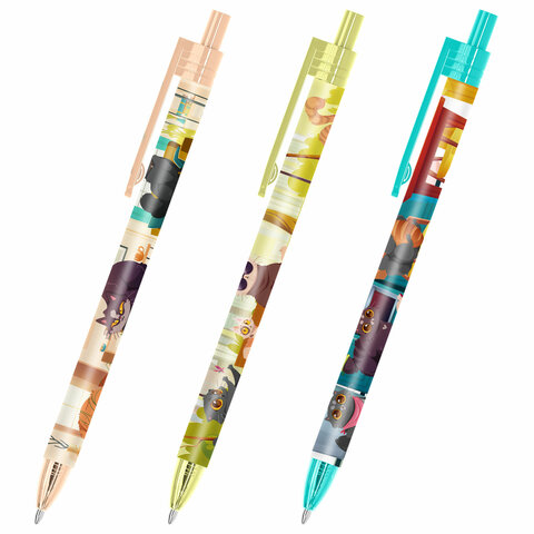 Ручка шариковая автоматическая с принтом FUNSTER (ФАНСТЕР) "CUTE ANIMALS", корпус soft-touch, СИНЯЯ, узел 0,7 мм, линия 0,35 мм, 144402