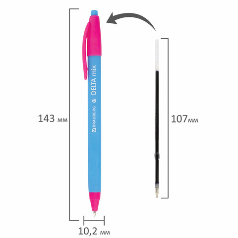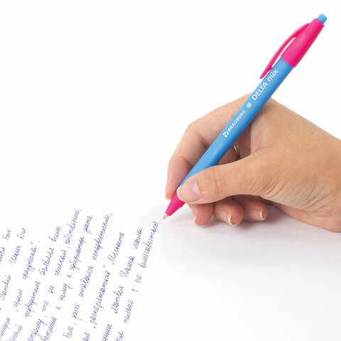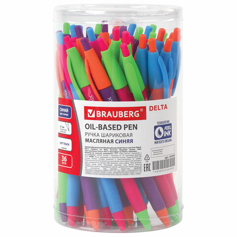 Ручка шариковая масляная автоматическая BRAUBERG "Delta Mix", СИНЯЯ, корпус soft-touch ассорти, узел 0,7 мм, линия письма 0,35 мм, 143340, OBPR366
