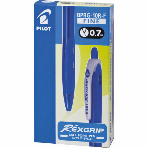 Ручка шариковая масляная автоматическая с грипом PILOT "Rex Grip", СИНЯЯ, узел 0,7 мм, линия письма 0,22 мм, BPRG-10R-F
