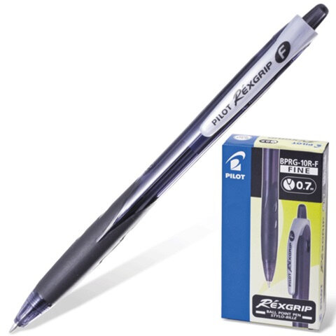Ручка шариковая масляная автоматическая PILOT "Rex Grip", узел 0,7 мм, линия 0,22 мм, упор, черная, BPRG-10R-F B