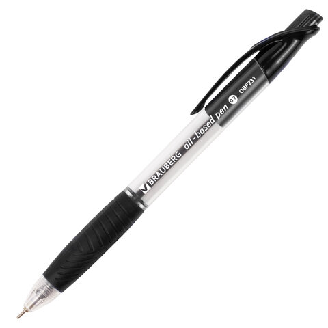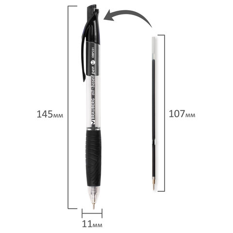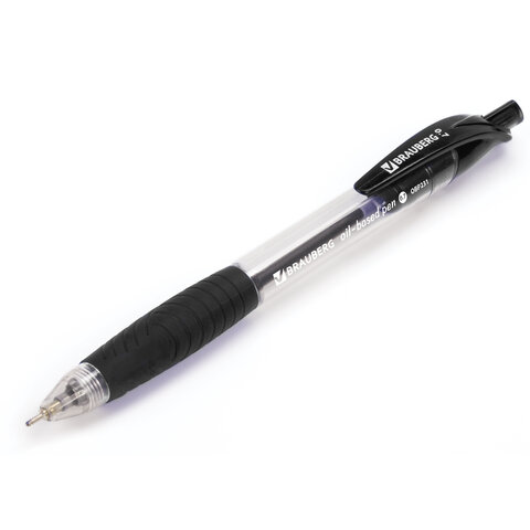 Ручка шариковая масляная автоматическая с грипом BRAUBERG "Jet", ЧЕРНАЯ, узел 0,7 мм, линия письма 0,35 мм, 142133