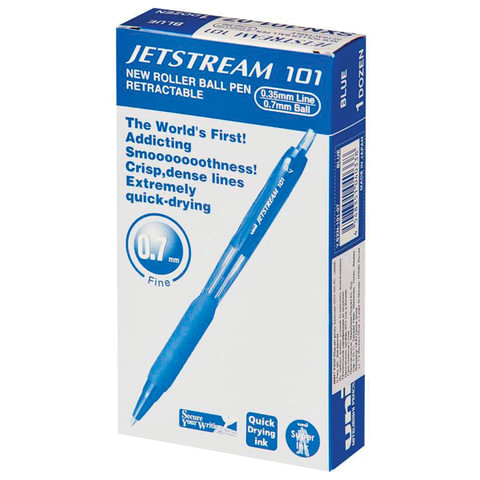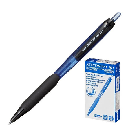 Ручка шариковая масляная автоматическая с грипом UNI (Япония) "JetStream", СИНЯЯ, узел 0,7 мм, линия письма 0,35 мм, SXN-101-07, SXN-101-07 BLUE