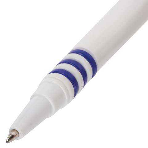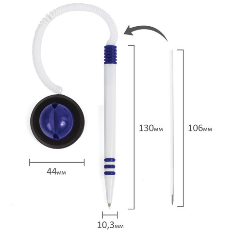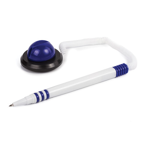 Ручка шариковая настольная BRAUBERG "Стенд-Пен", СИНЯЯ, пружинка, корпус белый/синий, линия письма 0,5 мм, 141353