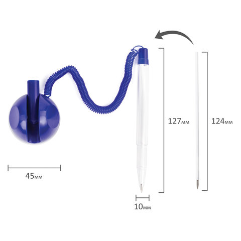 Ручка шариковая настольная BRAUBERG "Стенд-Пен", СИНЯЯ, пружинка, корпус синий, линия 0,5 мм, 140195