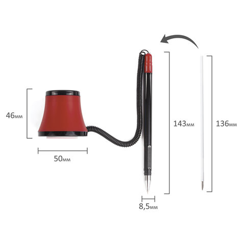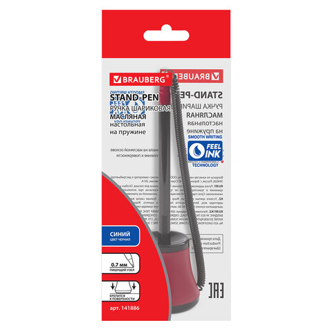 Ручка шариковая настольная масляная BRAUBERG "Стенд-Пен №1", СИНЯЯ, корпус черный/красный, линия письма 0,35 мм, 141886