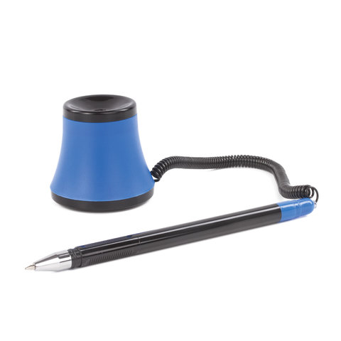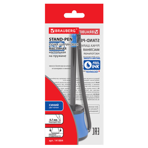 Ручка шариковая настольная масляная BRAUBERG "Стенд-Пен №1", СИНЯЯ, корпус черный/синий, линия письма 0,35 мм, 141884