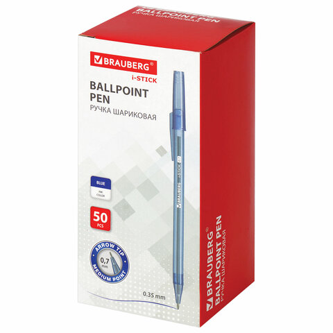Ручка шариковая BRAUBERG "i-STICK" СИНЯЯ, пишущий узел 0,7 мм, линия письма 0,35 мм, 143442