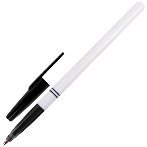 Ручка шариковая BRAUBERG "Офисная", ЧЕРНАЯ, корпус белый, узел 1 мм, линия письма 0,5 мм, 140890