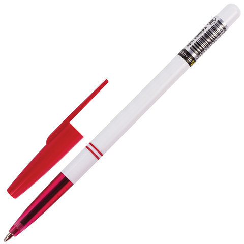 Ручка шариковая BRAUBERG "Офисная", КРАСНАЯ, корпус белый, узел 1 мм, линия письма 0,5 мм, 140892