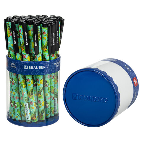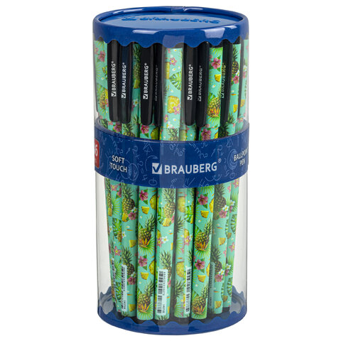 Шариковая ручка BRAUBERG SOFT TOUCH GRIP "PINEAPPLE" с мягким покрытием корпуса и оригинальным дизайном.
