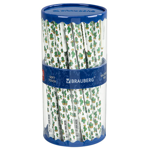 Шариковая ручка BRAUBERG SOFT TOUCH STICK "CACTUS" с мягким покрытием корпуса и оригинальным дизайном рисунка.