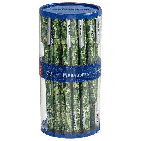Шариковая ручка BRAUBERG SOFT TOUCH STICK "KHAKI" с мягким покрытием корпуса и оригинальным дизайном рисунка.