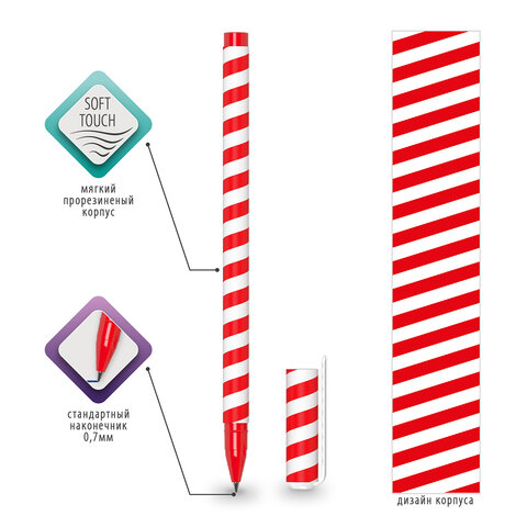 Шариковая ручка BRAUBERG SOFT TOUCH STICK "TWIST" с мягким покрытием корпуса и ярким полосатым рисунком.