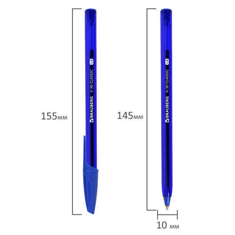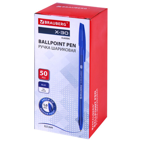 Ручка шариковая BRAUBERG X-30 CLASSIC, СИНЯЯ, мягкое письмо, пишущий узел 1 мм, линия письма 0,5 мм, 144331