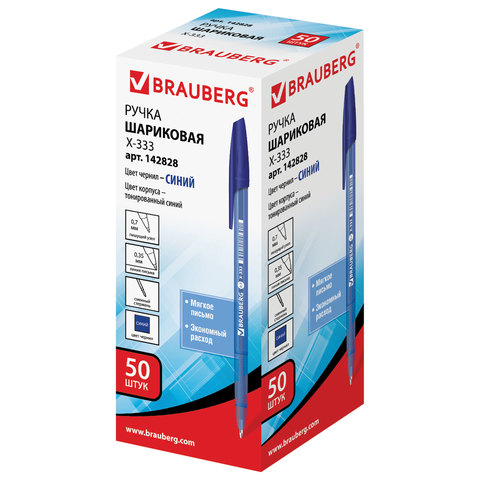 Ручка шариковая BRAUBERG "X-333", СИНЯЯ, корпус тонированный, узел 0,7 мм, линия письма 0,35 мм, 142828