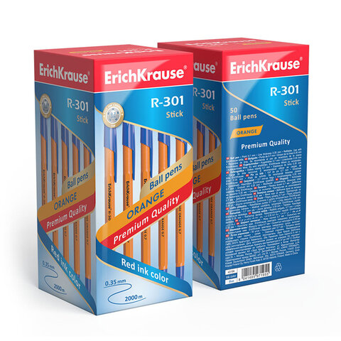 Удобная шариковая ручка ERICH KRAUSE серии R-301 со стандартным типом пишущего узла и заменяемым стержнем.