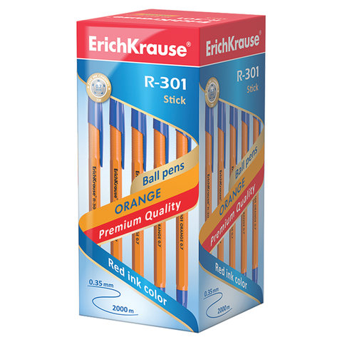 Ручка шариковая ERICH KRAUSE "R-301 Orange", СИНЯЯ, корпус оранжевый, узел 0,7 мм, линия письма 0,35 мм, 43194